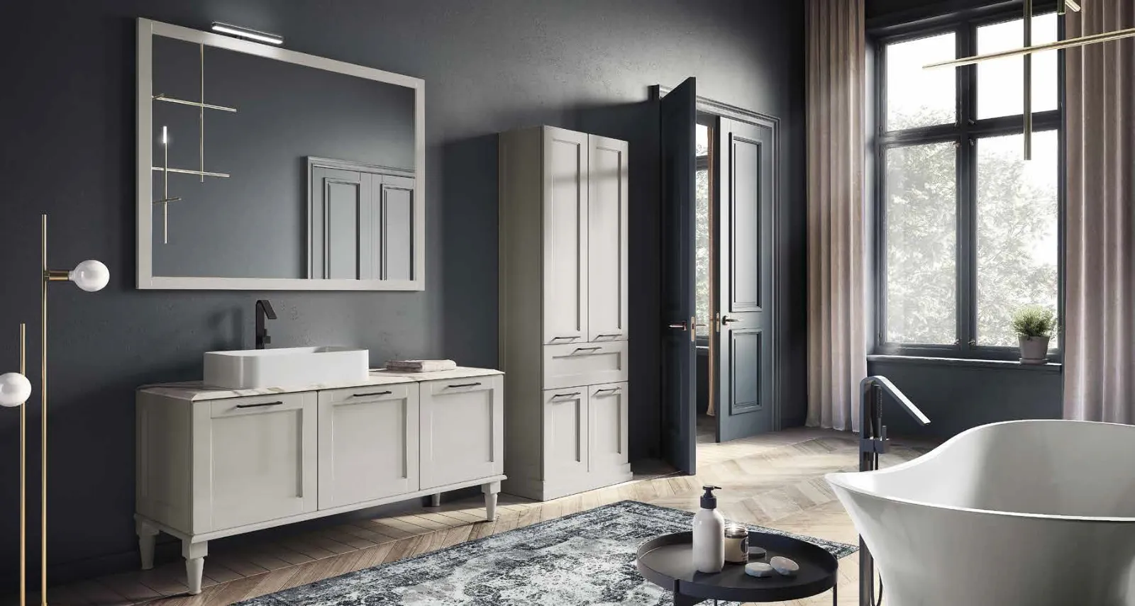 Grazie alla vasta serie di soluzioni di Arredo Bagno moderno con mobili bagno a terra di Puntotre, ogni spazio è esteticamente apprezzabile e funzionale. Il noto e conosciuto brand presenta arredi per il bagno di ogni tipo, così da rendere l’arredo del locale veramente personalizzabile, agibile e versatile. Il modello Mobile da Bagno Accademia 34 di Puntotre in laccato opaco qui proposto connota il locale mixando creatività e design, con estrema stile. Vieni a trovarci per scoprire questo e i restanti modelli di grande qualità dell'azienda che presentiamo, ti assicureremo la totale soddisfazione una volta realizzato il progetto. Ricca offerta di linee e tonalità per le proposte di Arredo Bagno moderno con mobili bagno a terra di Puntotre, soluzioni sempre destinate alla massima progettualità.