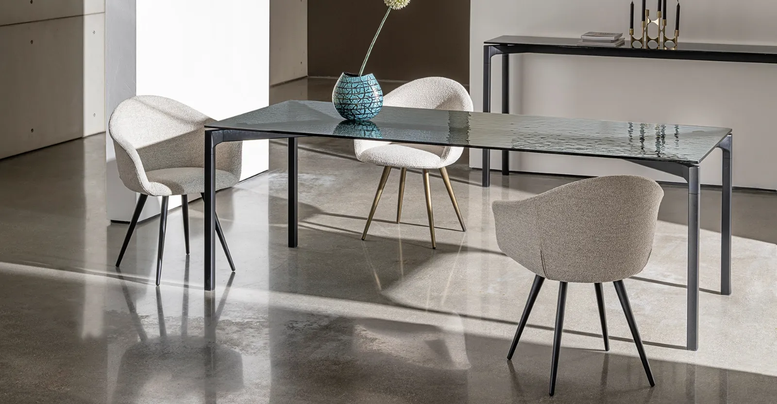 La scelta dei Tavoli da pranzo è veramente fondamentale se vuoi completare il proprio Arredamento Casa: sono da verificare gli spazi disponibili, gli abbinamenti cromatici e i materiali. In showroom troverai una ricca gamma di mobili e oggetti accessori in vetro dei migliori brand, ideali per completare i tuoi locali. Contattaci per informazioni e preventivi o trovi nel nostro showroom le varie più belle proposte da pranzo in vetro di Sovet, esempio di tutta l'eccellenza assicurata dal brand.