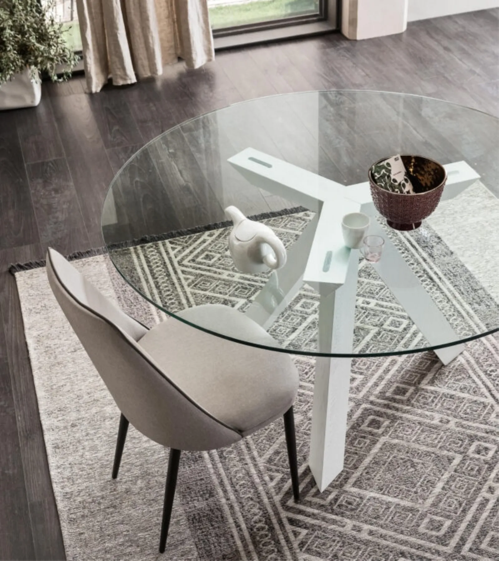 Compila il form e contattaci per scoprire l'Arredamento Casa delle migliori marche, tavoli e sedie a marchio Maronese. Tavolo rotondo Run di Maronese: scopri una ricca gamma di mobili ed elementi accessori da pranzo per ultimare i tuoi spazi contando su varie possibilità di personalizzazione. I modelli fissi in vetro come quello visibile in foto si adattano ai più vari contesti abitativi, essendo veramente versatili e robusti. I Tavoli sono componenti d'arredo grazie ai quali è possibile valorizzare il soggiorno, la cucina o anche altri locali domestici, grazie a materiali durevoli e fantasiosi abbinamenti cromatici.