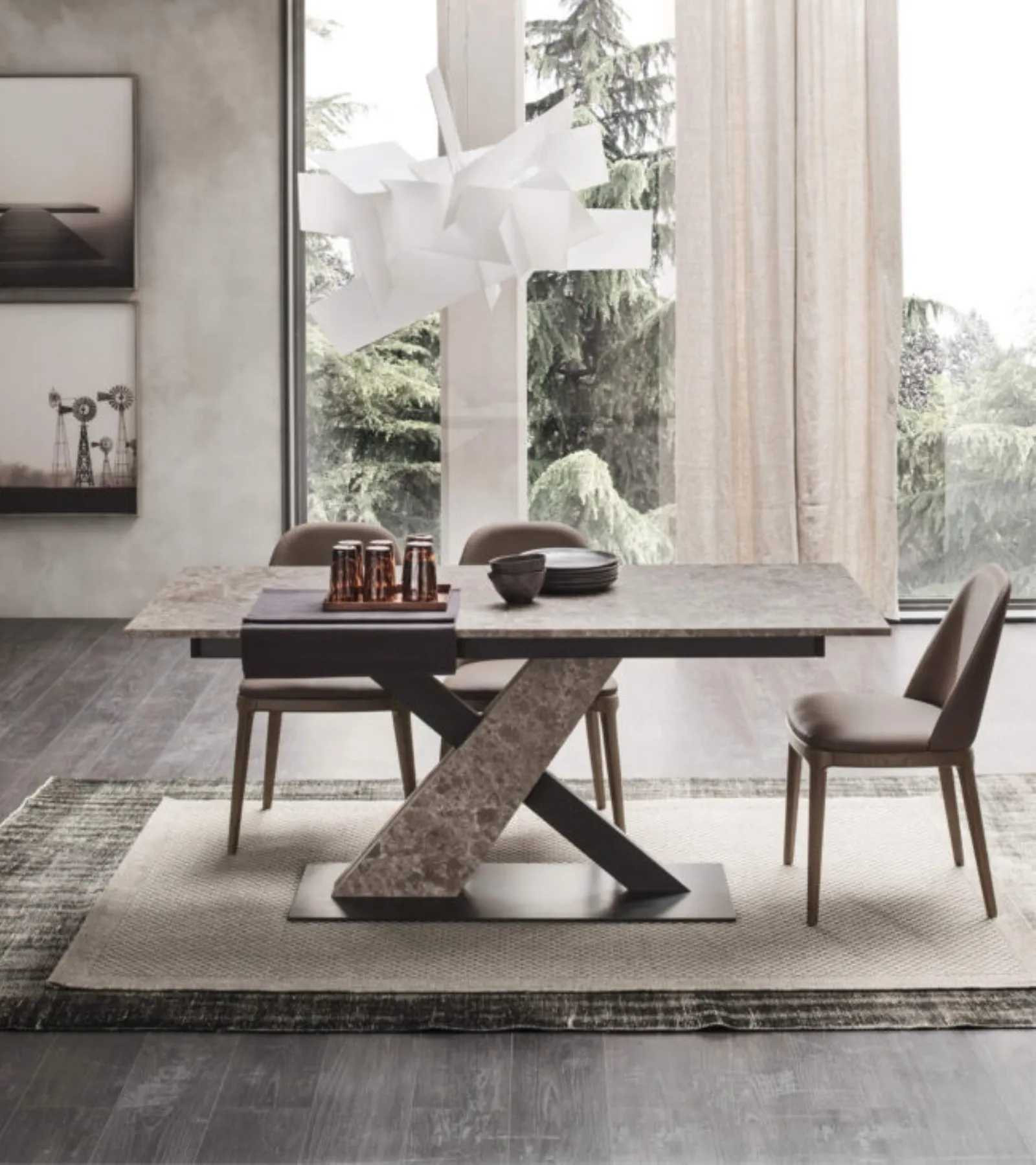 Ideali per dare vita a degli abbinamenti unici con sedie e complementi design, i Tavoli allungabili della marca sono soluzioni tra le più originali in commercio, ideali per il soggiorno e la zona cucina. Se cerchi un tavolo da pranzo di alto contenuto estetico, contattaci e ricevi informazioni e preventivi sul modello presente in foto. Un modello come quello in foto, in abbinamento alle giuste sedie, saprà impreziosire il mood delle stanze di casa dedicate per eccellenza all'ospitalità. Il noto e conosciuto brand Maronese, leader nella produzione di mobili in melaminico, ha scelto per la sua serie un'infinità di finiture, forme e tonalità.